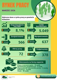 Liczba osób bezrobotnych na koniec marca 2026 roku wyniosła 5 049 osób i była wyższa o 717 osób niż w marcu 2025 roku (4 332 osoby). W miesiącu marcu 2026 roku włączono do...